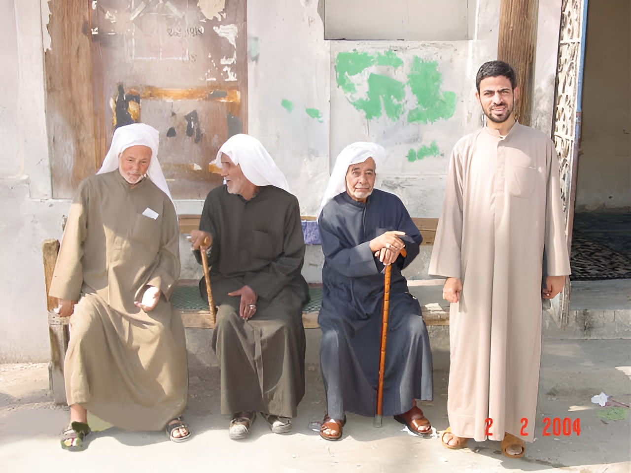 من اليسار الحاج عبدالله عاشور والحاج كاظم الحرك و الحاج محمد علي عبدالمهدي و جابر عبدالله عاشور